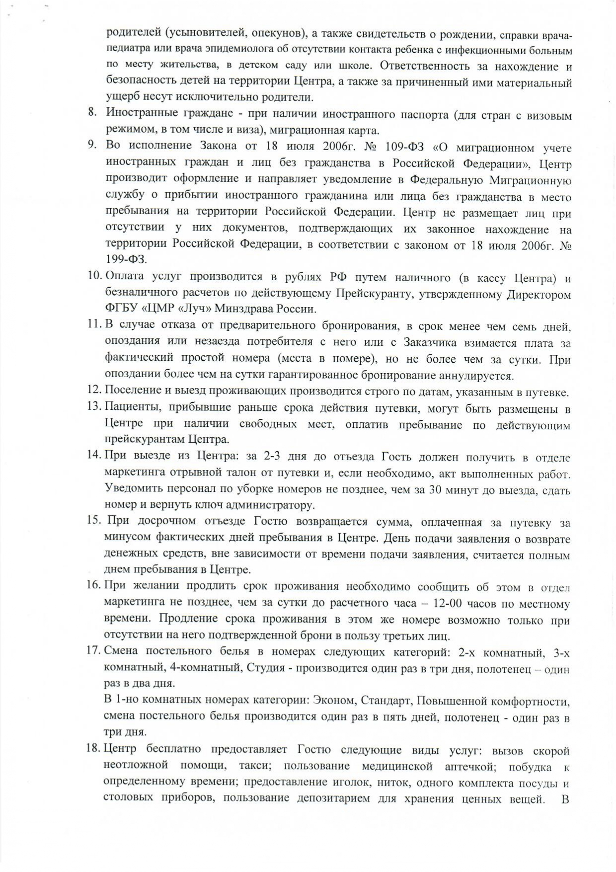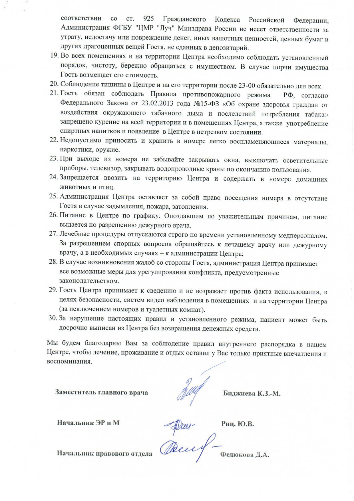 ПРАВИЛА поведения пациентов во время пребывания в ФГБУ ЦМР «Луч» Минздрава России в условиях сохранения рисков распространения COVID-19