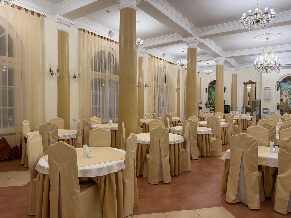 Мы организовали обслуживание отдыхающих в трех комфортабельных обеденных залах, предусмотрели трехразовую систему приема пищи. Сбалансированное меню во всех залах разработано на основании диет с № 1 по № 15. Для детей предусмотрено четырехразовое питание включая полдник. Каждый гость имеет возможность получить разнообразное, лечебное, сбалансированное питание, руководствуясь назначениями своего лечащего врача.