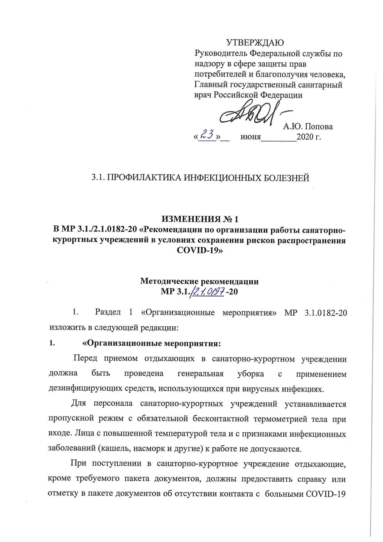 Рекомендации для санаторно-курортных организаций в условиях сохранения рисков распространения COVID-19