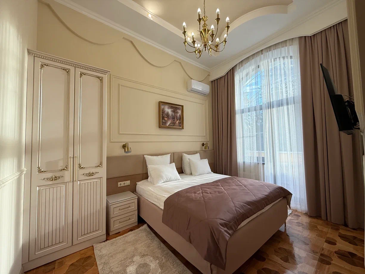 Трехкомнатный номер повышенной комфортности расположен в трехэтажном здании третьего корпуса, состоит из трех комнат - гостиной и двух спален. Уборка производится ежедневно.